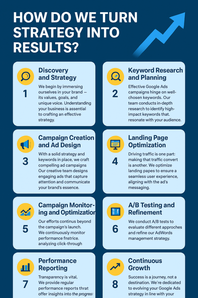 We create and design ad campaigns by combining strategic planning with creative innovation. This comprehensive process includes audience targeting, message development, and visual design to ensure impactful ads that engage audiences effectively, drive conversions, and deliver measurable, sustainable business growth over time.